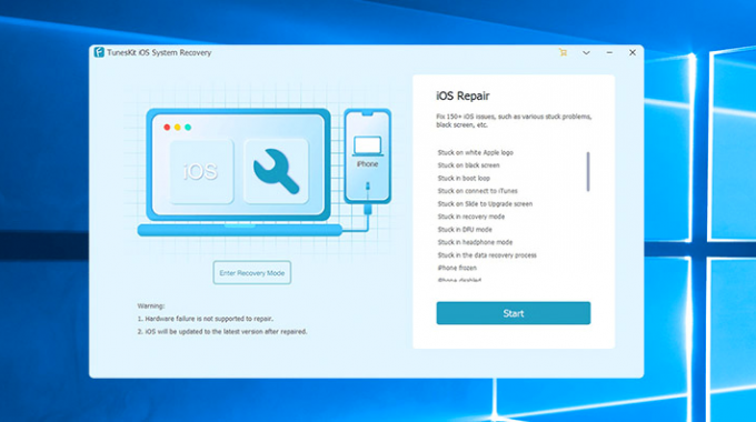 Based on this image's title: “TunesKit iOS System Recovery - Best iPhone Repair Software”