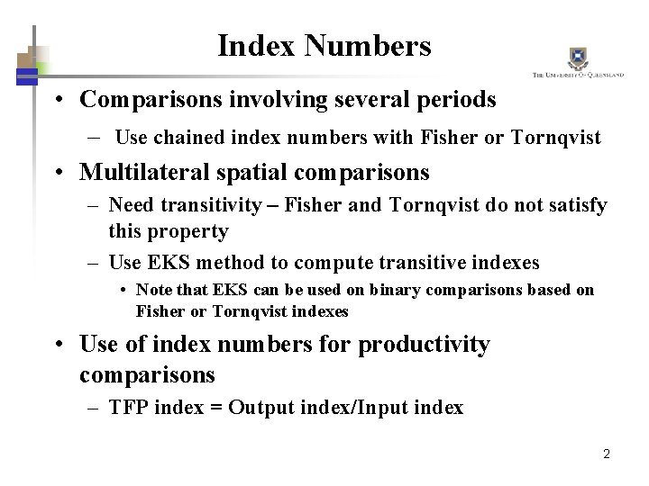 PPT - Efficiency and Productivity Measurement: Index Numbers PowerPoint ...