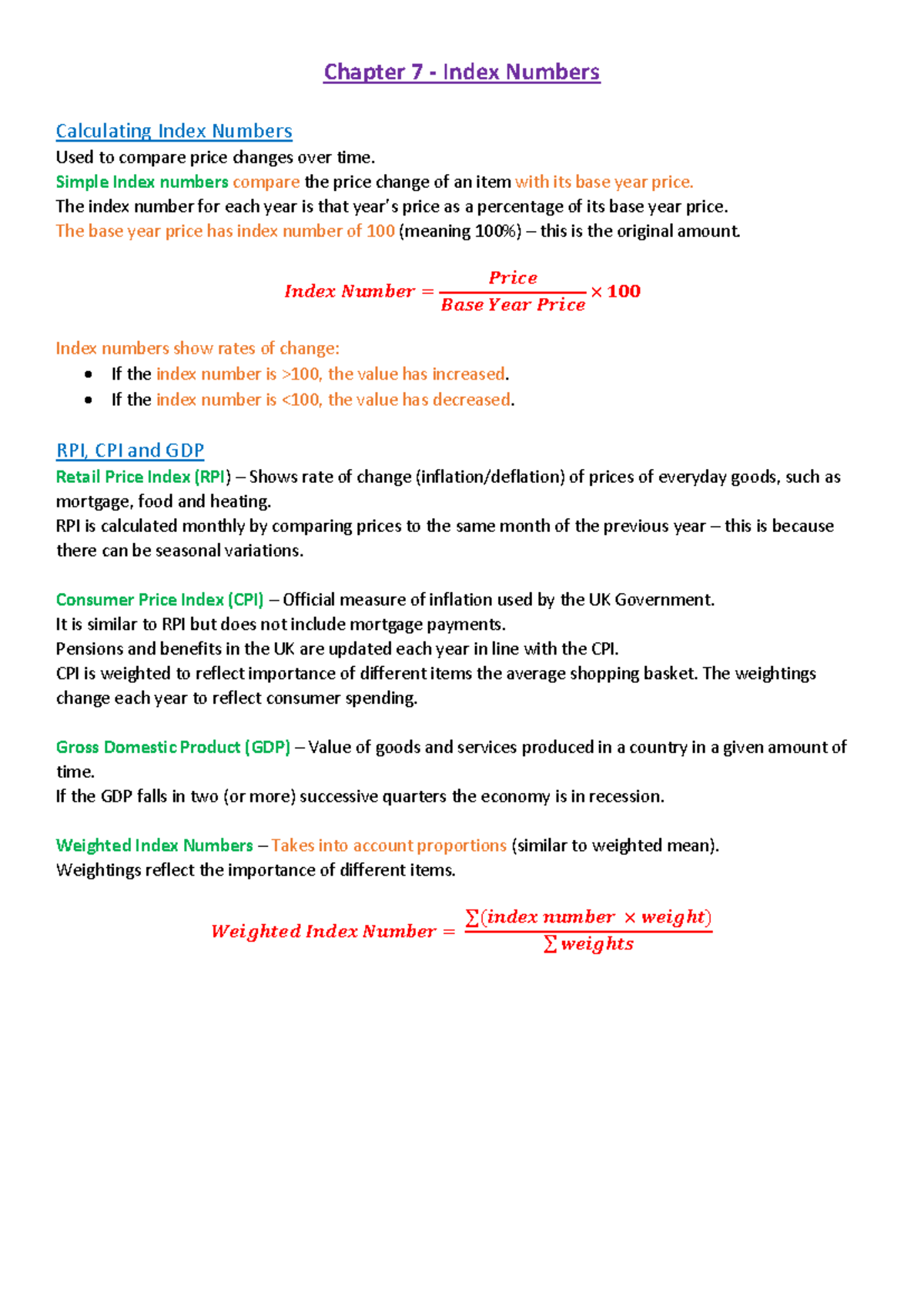 Index Numbers - Comprehensive Study Notes - Studocu