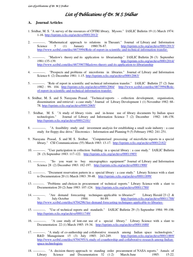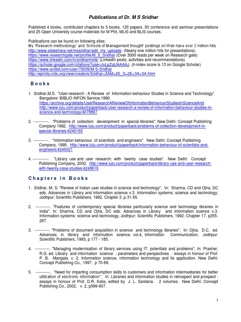 List of Publications of Dr. M S Sridhar | PDF | Information Science ...