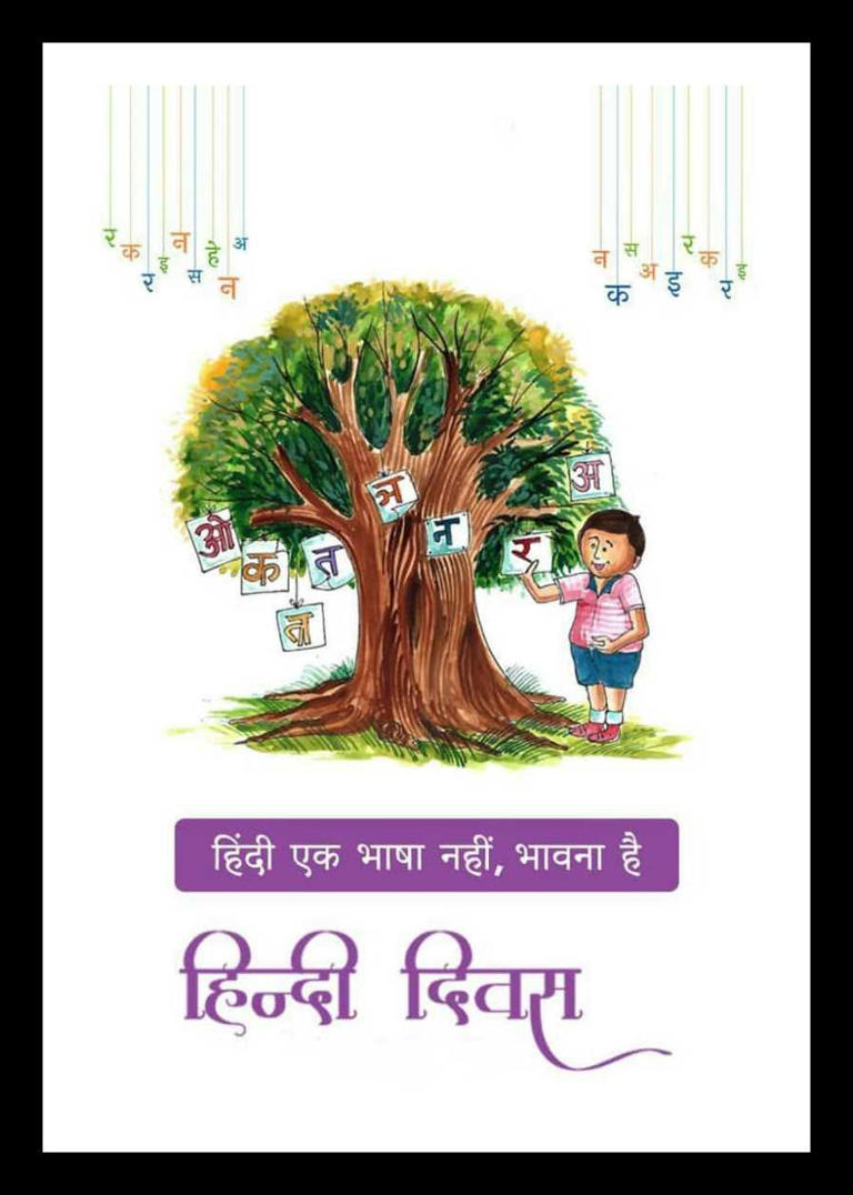 Based on this image's title: “Creative Hindi Diwas Drawing Ideas for Students and Kids”