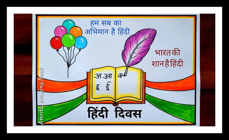 Hindi Diwas Drawing And Poster: हिंदी दिवस पर बनाएं ये शानदार ड्राइंग ...