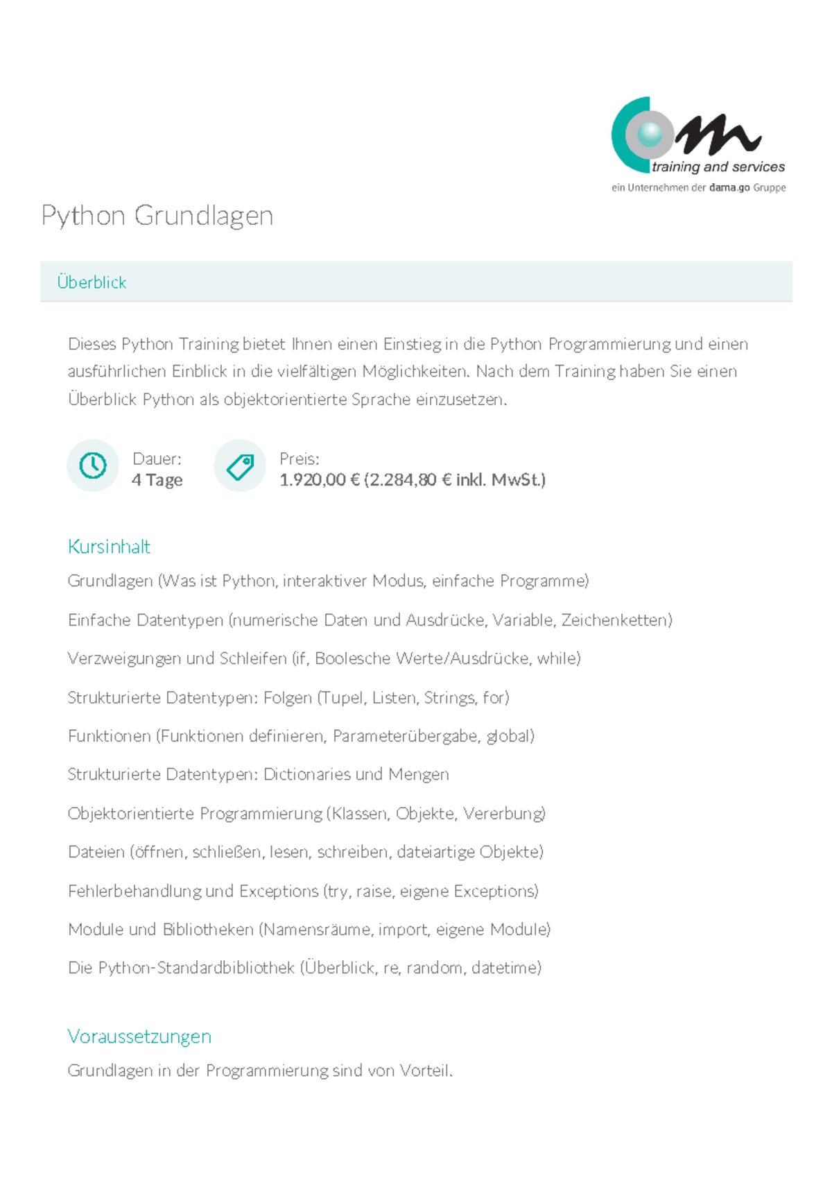 Datalytics IT-Beratung - Data Science Schulung mit Python