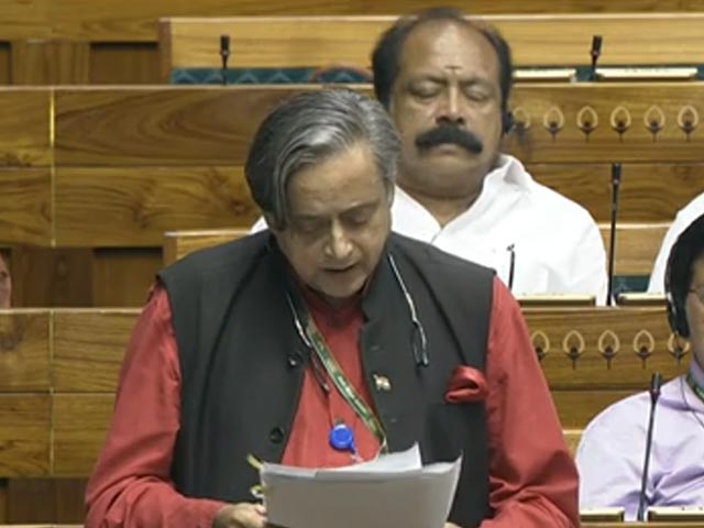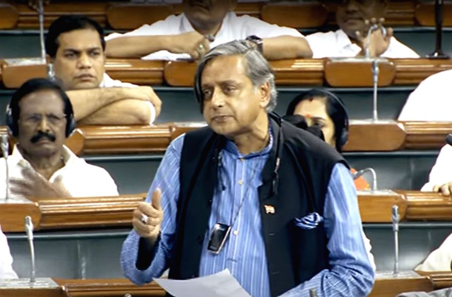 Congress MP Shashi Tharoor speaks in Lok Sabha