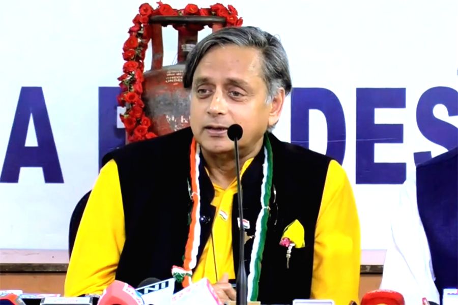 Congress MP Shashi Tharoor addresses a press conference