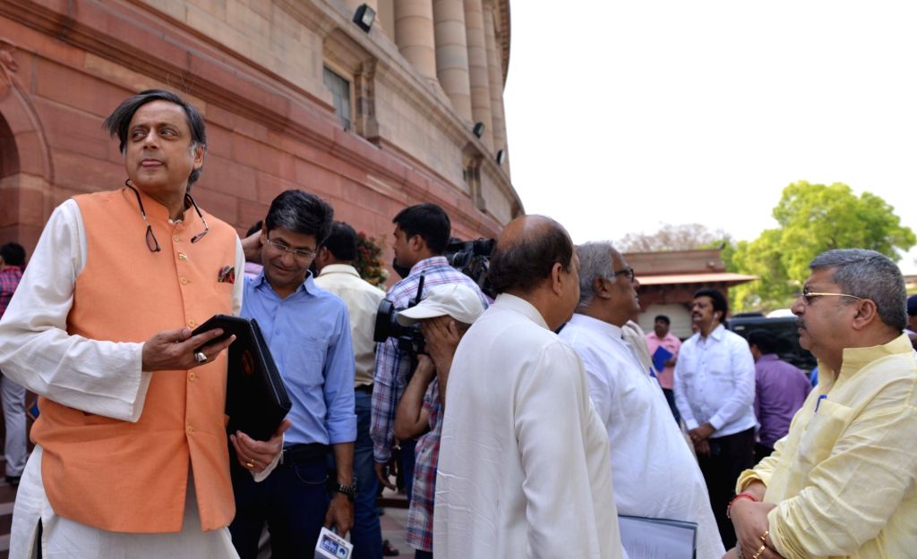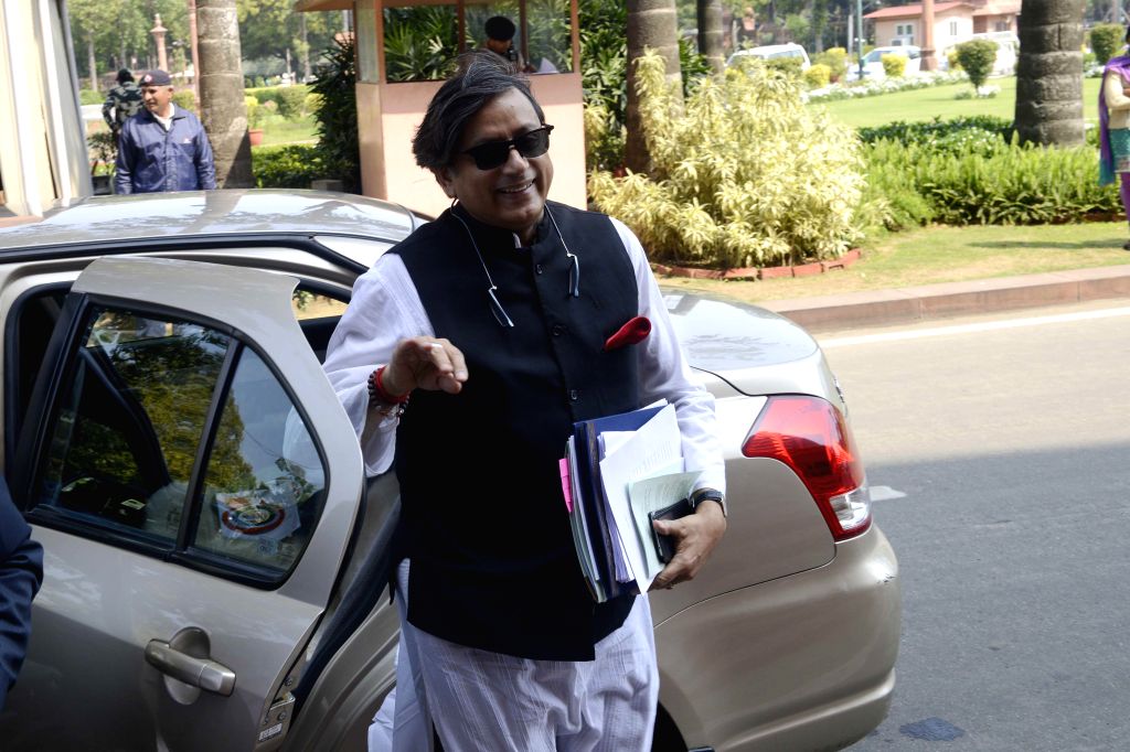 Congress MP Shashi Tharoor arrives at the Parliament