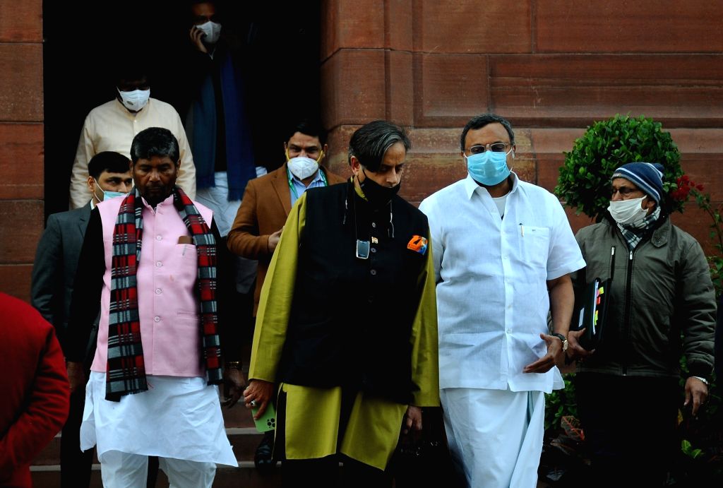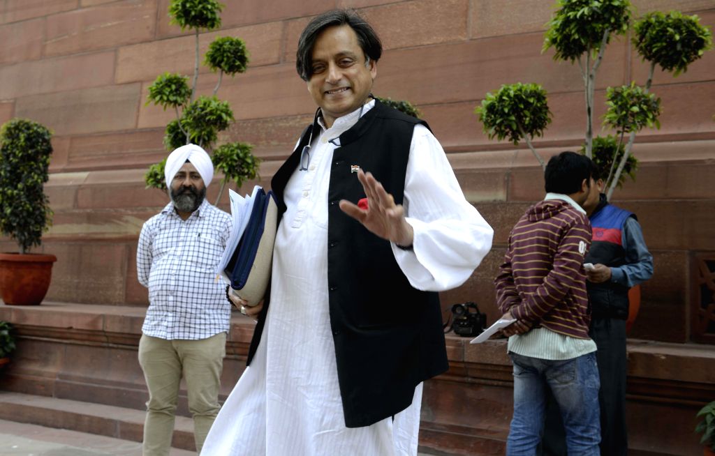 New Delhi :Congress MP Shashi Tharoor arrives at the Parliament House