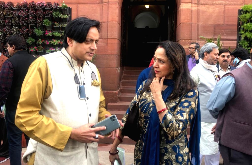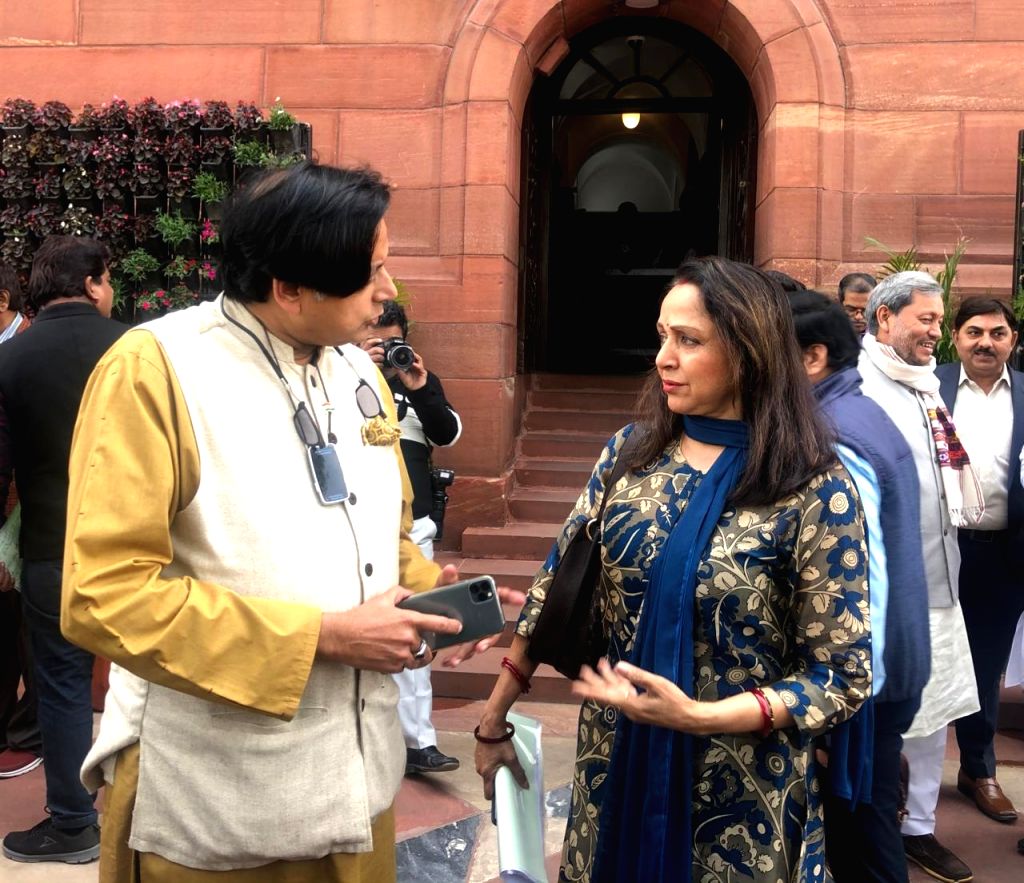Budget Session - Shashi Tharoor, Hema Malini at Parliament