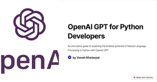 OpenAI GPT For Python Developers | PDF | Computer Software and ...