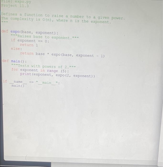 Solved Hem 1 def expo(base, exponent): # Write your function | Chegg.com