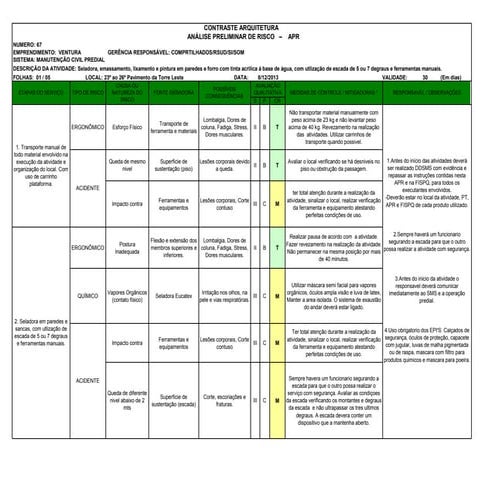 Modelo APR Preenchida 1 | PDF | Fatores humanos e Ergonomia