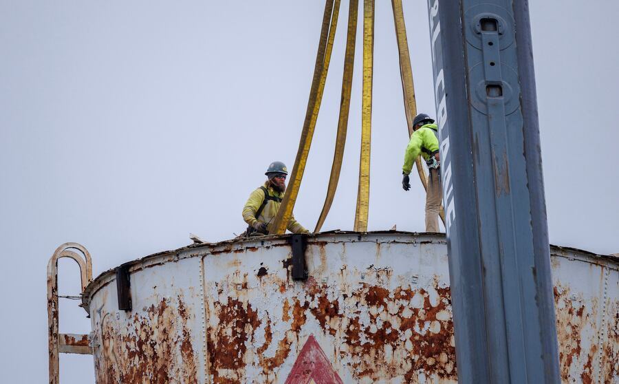 Here comes the cup: Giant Dixie Cup replica is lowered from Wilson ...