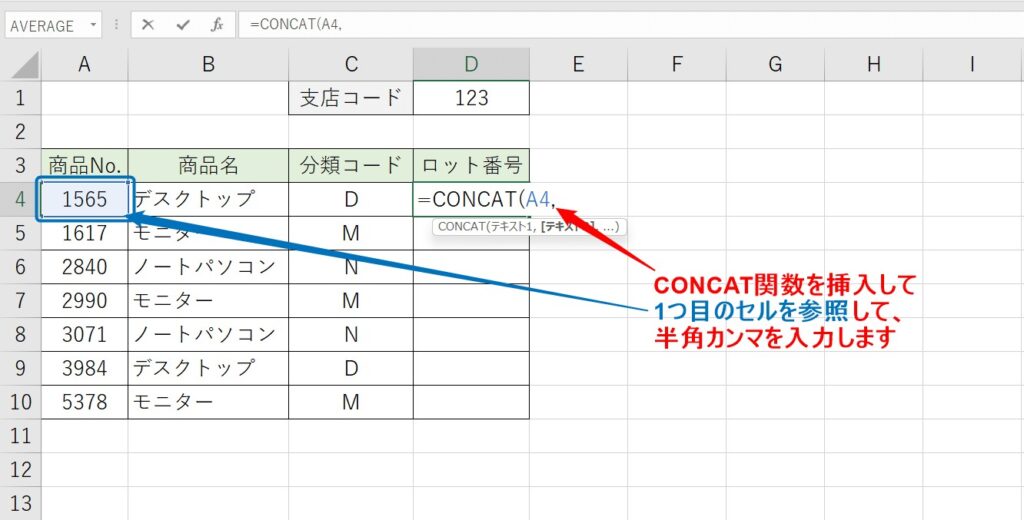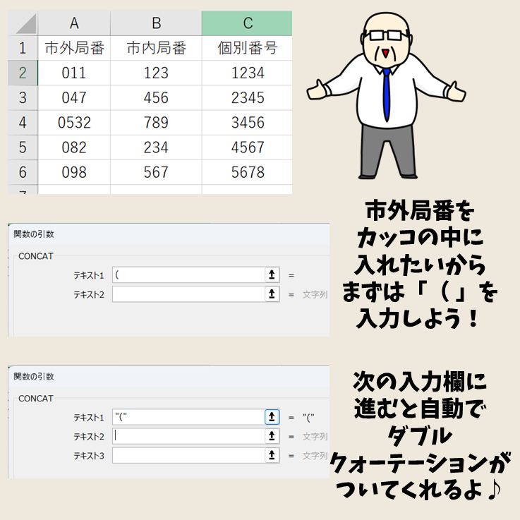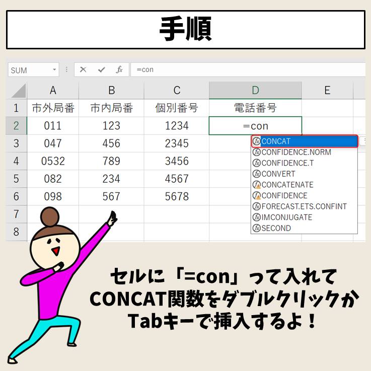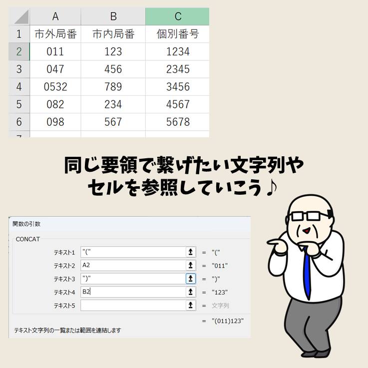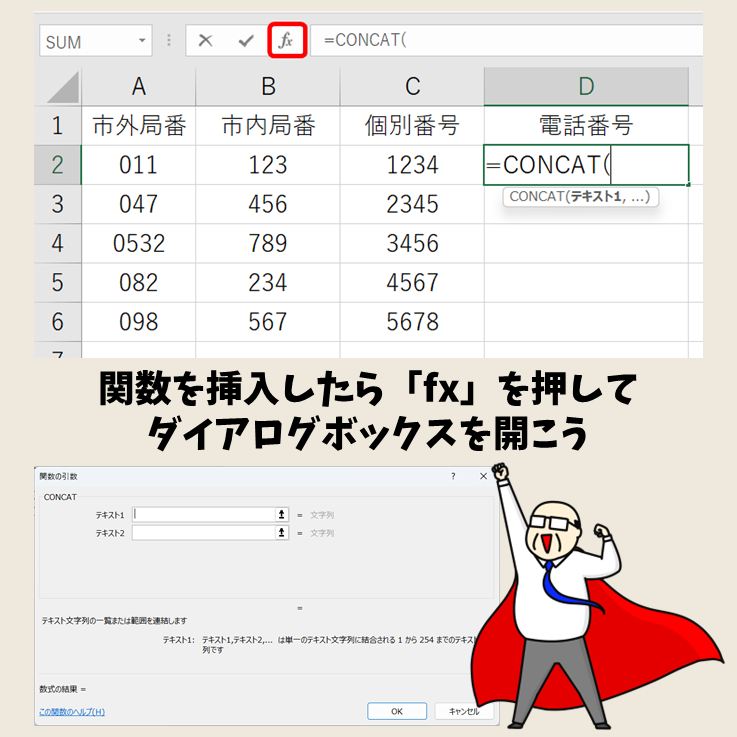 CONCAT関数の使い方。複数の文字列の連結にセル範囲を指定できる! | Excel関数 | できるネット
