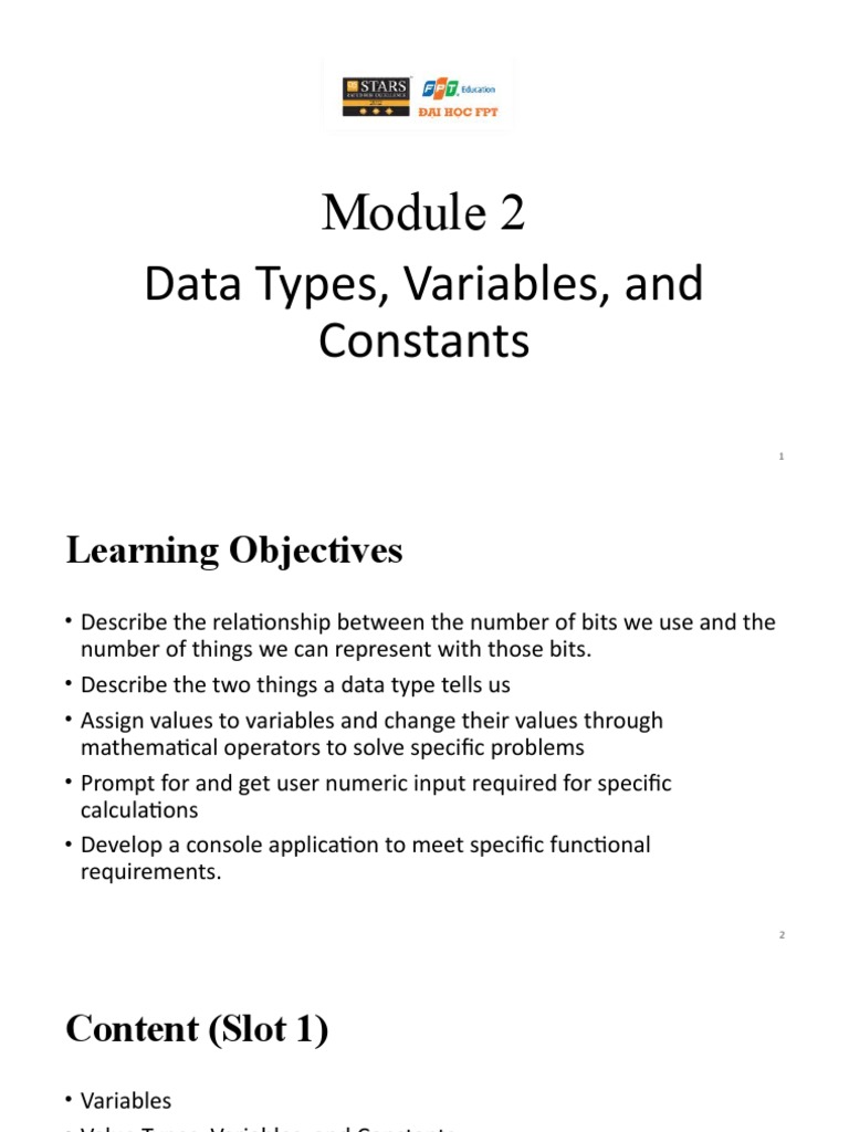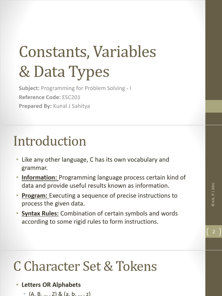 Constant, variables, data types | PPT