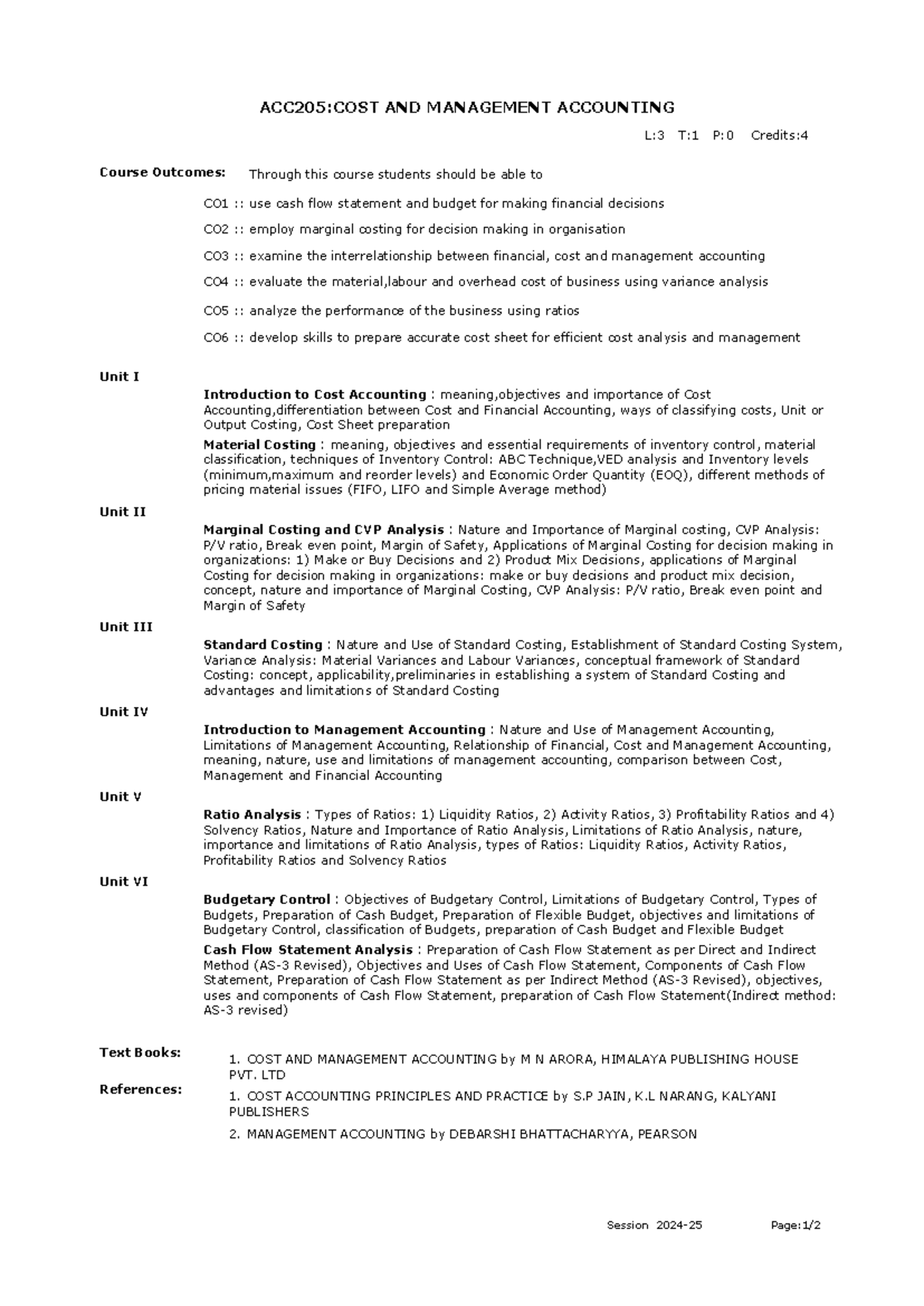 Frm Course Syllabus IPDownload - ACC205:COST AND MANAGEMENT ACCOUNTING ...