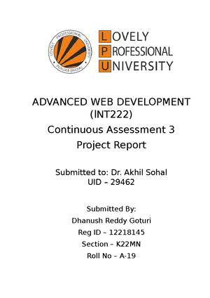 Frm Course Syllabus IPDownload (13) - INT222:ADVANCED WEB DEVELOPMENT ...