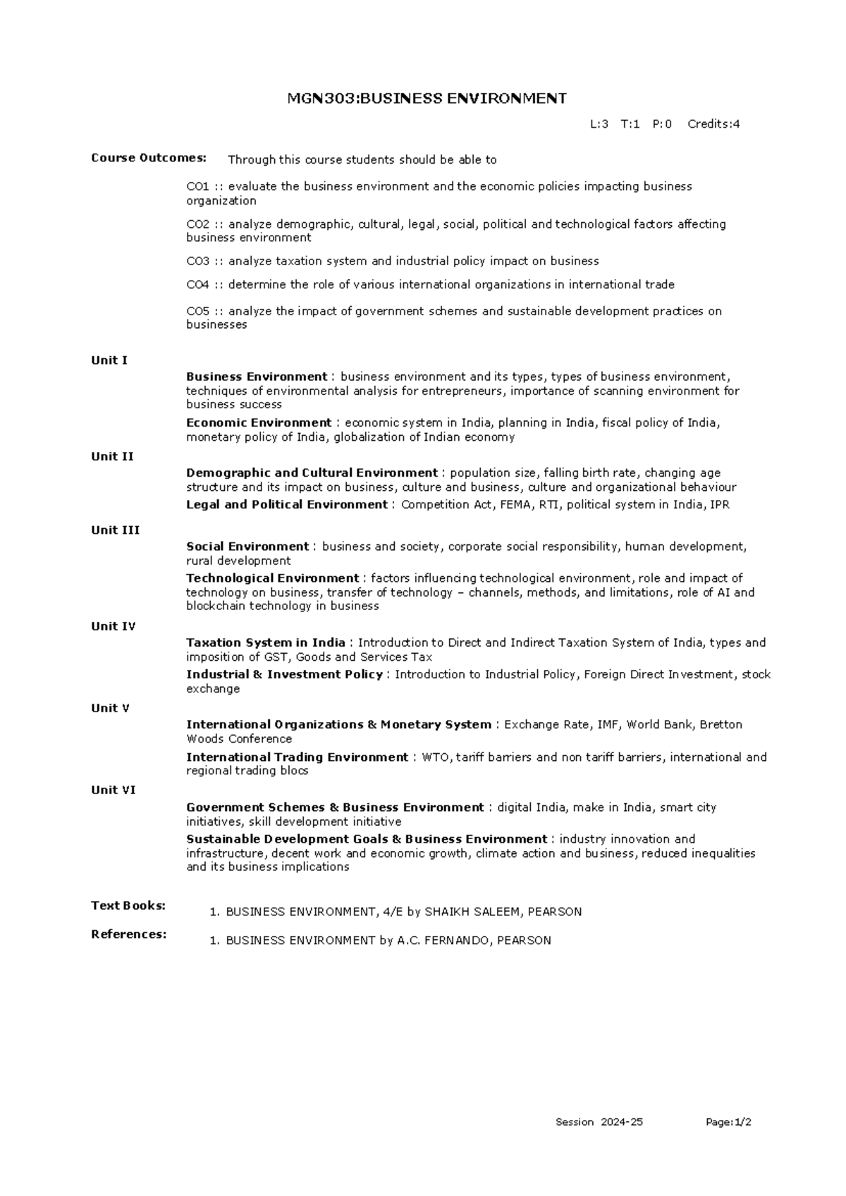 Frm Course Syllabus IPDownload (1) - MGN303:BUSINESS ENVIRONMENT Course ...
