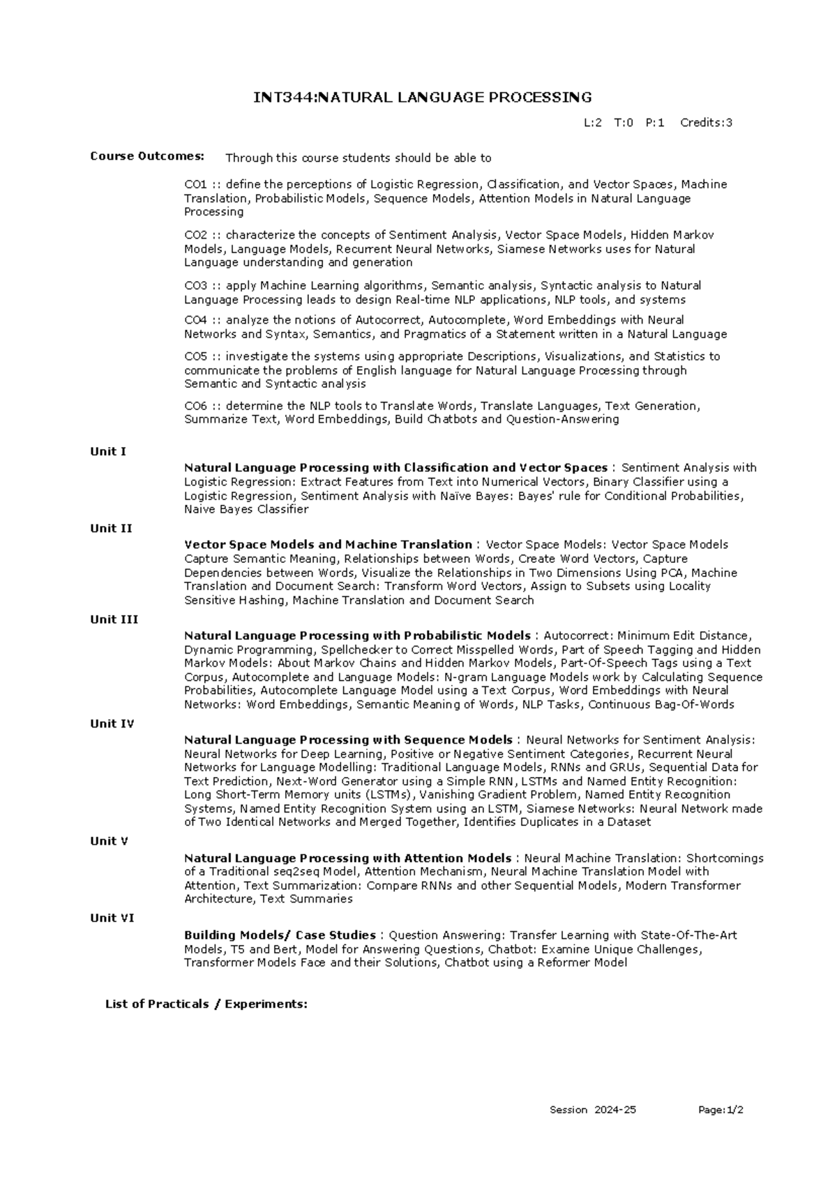 Frm Course Syllabus IPDownload - INT344:NATURAL LANGUAGE PROCESSING ...