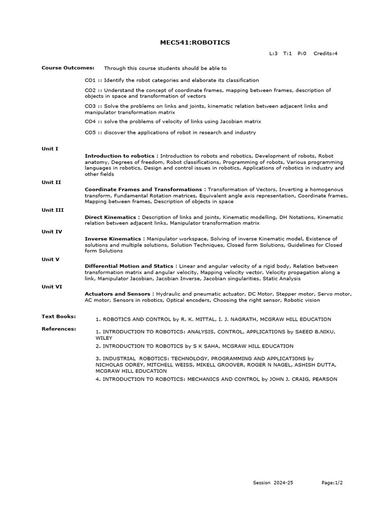 FRM Course Syllabus IPDownload | PDF | Kinematics | Robotics