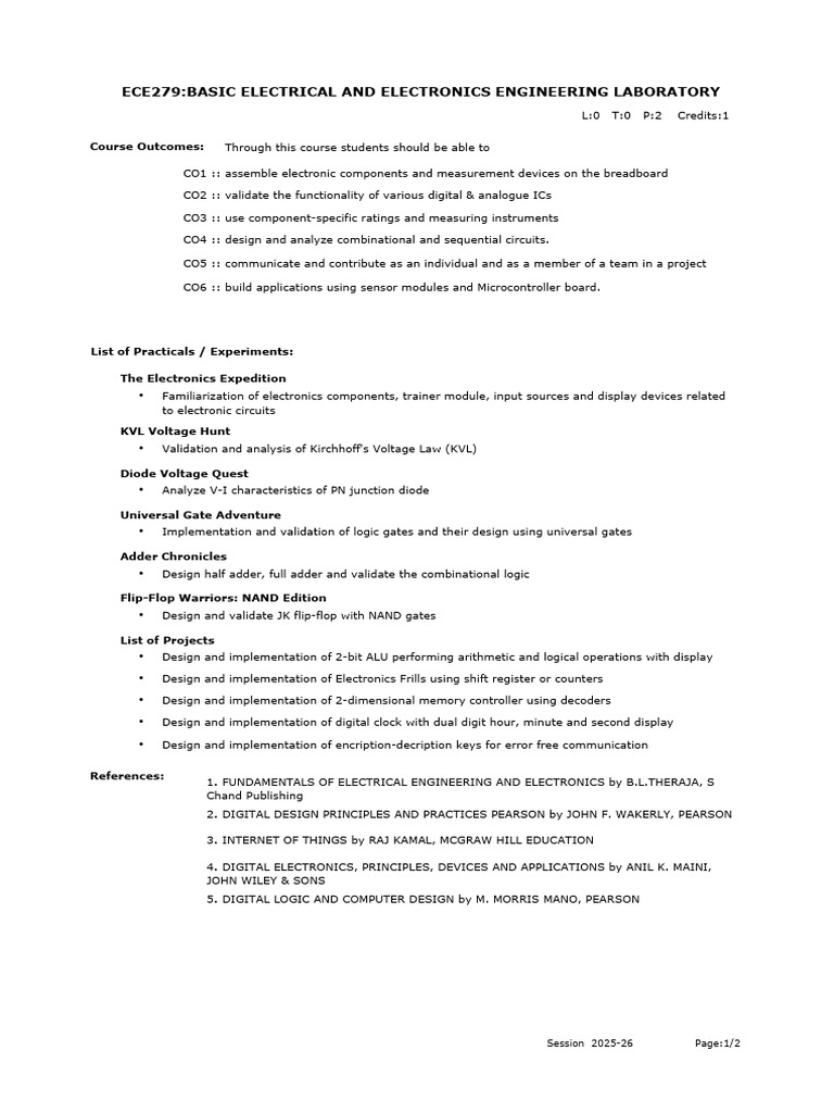 Frm Course Syllabus IPDownload - ECE216:DIGITAL ELECTRONICS LABORATORY ...