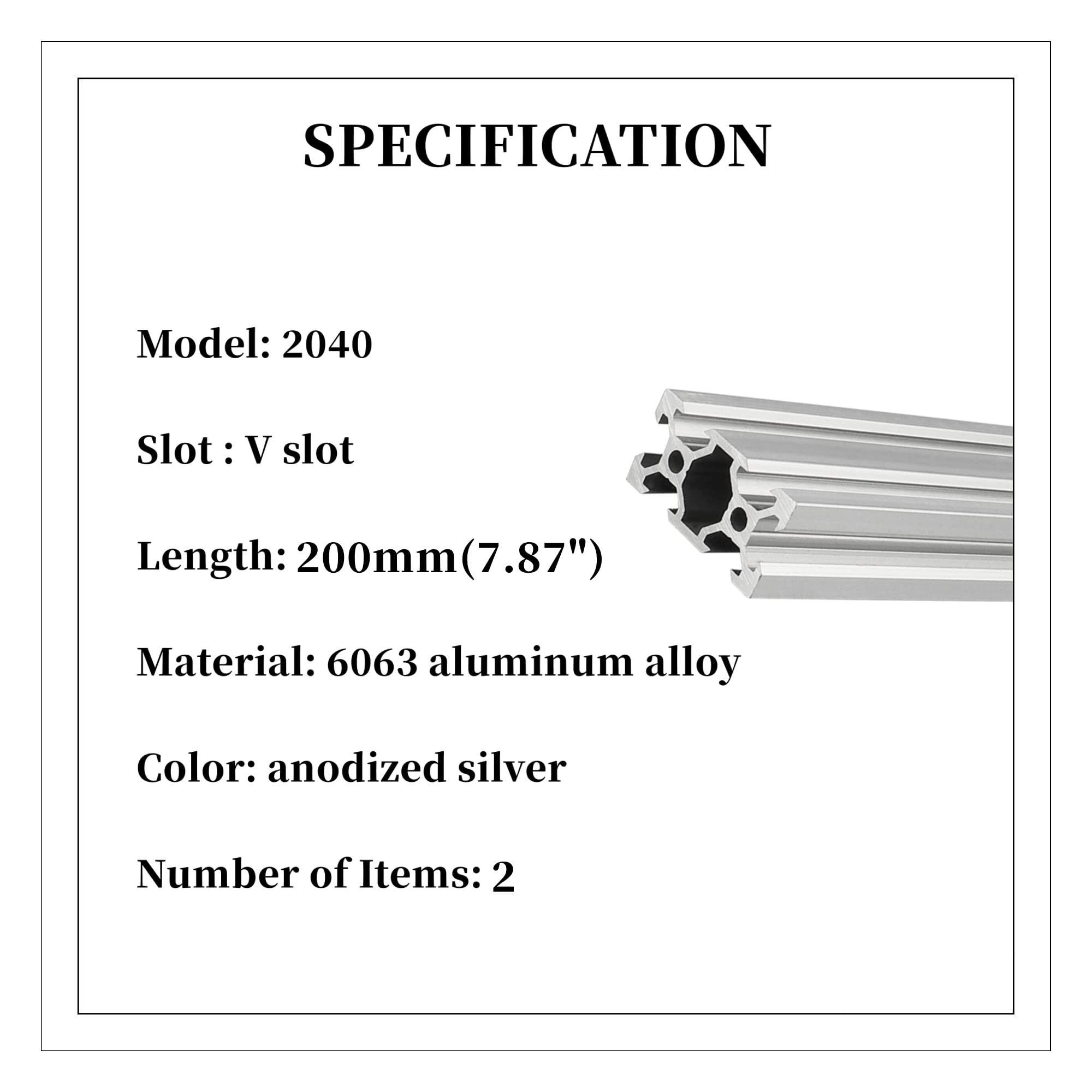 Snapklik.com : 2pcs 7.87 Inch 200mm 2040 V Slot Aluminum Extrusion ...