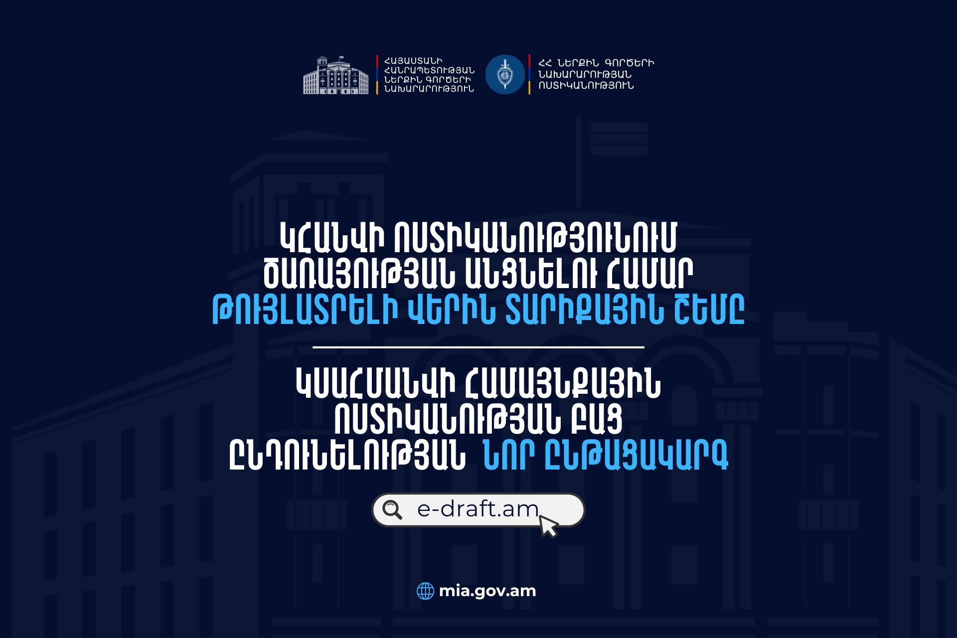 ՆԳՆ-ն հանրային քննարկման է դրել օրենքի նախագիծ. Ոստիկանությունում ...