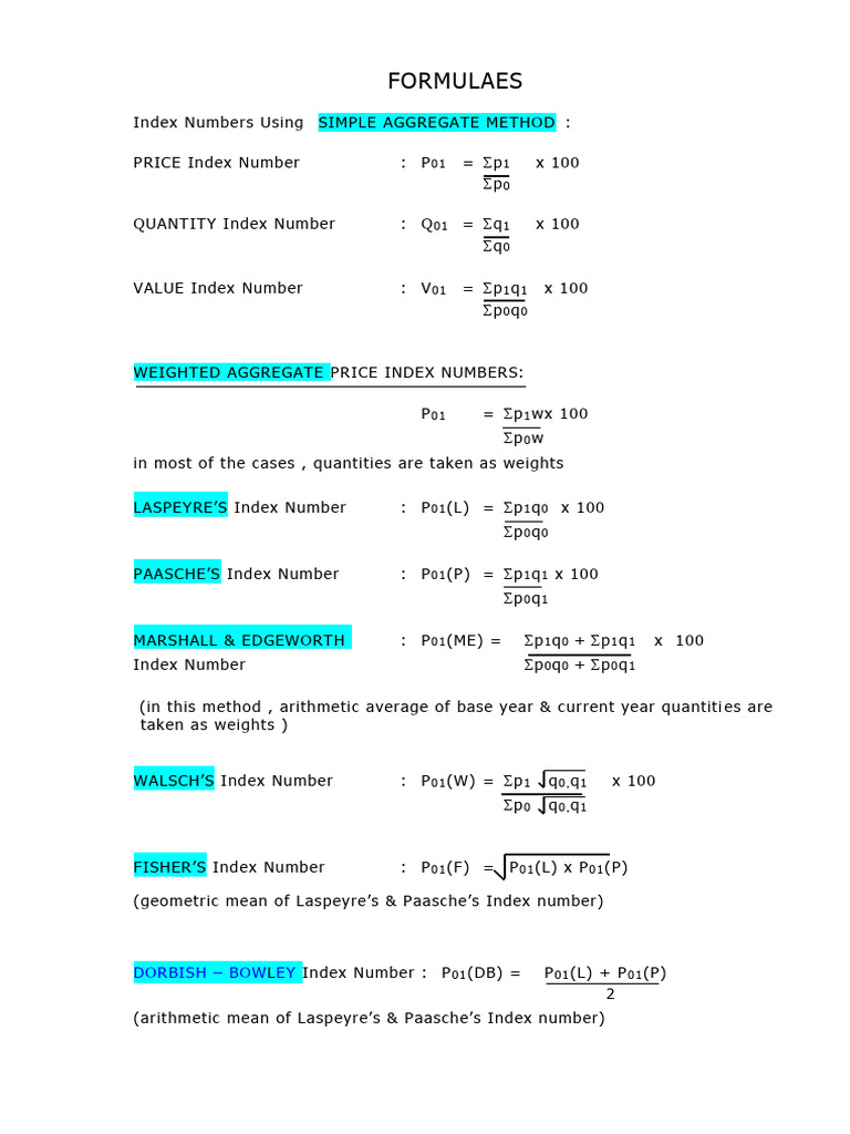 Unit-2 Index Numbers Formulas | PDF