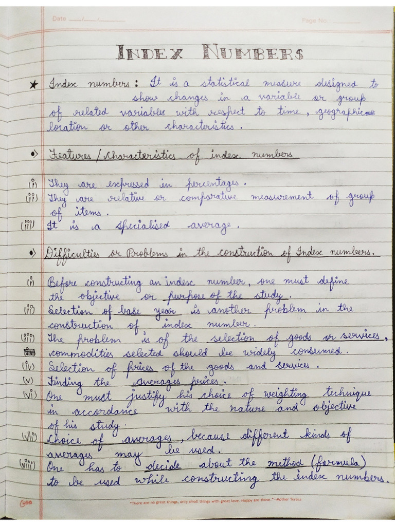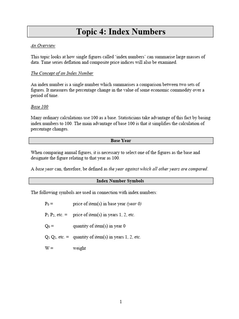 INDEX NUMBERS Handout | PDF