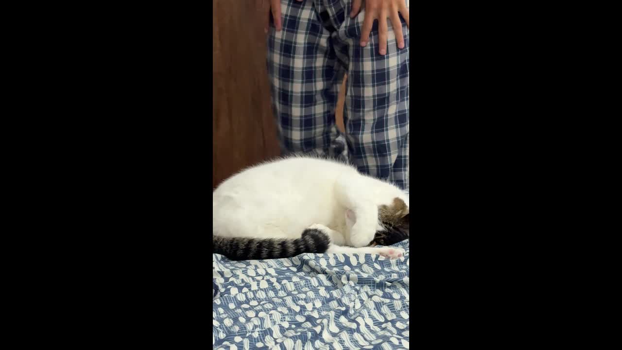 Cat refuses to leave bed in Madrid, Cundinamarca, Colombia