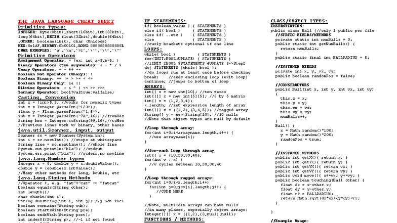 Java Language Cheat Sheet: Primitive Types & Operators - Studocu