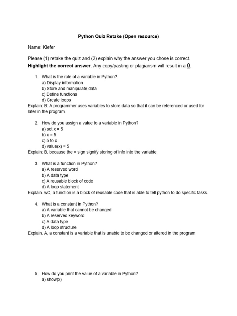 Based on this image's title: “Python Quiz | PDF | Python (Programming Language) | Data Type