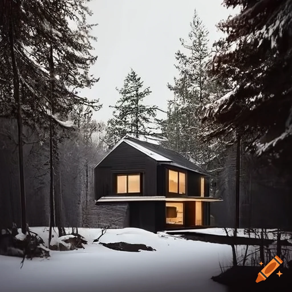 Minimalist house in a snowy forest