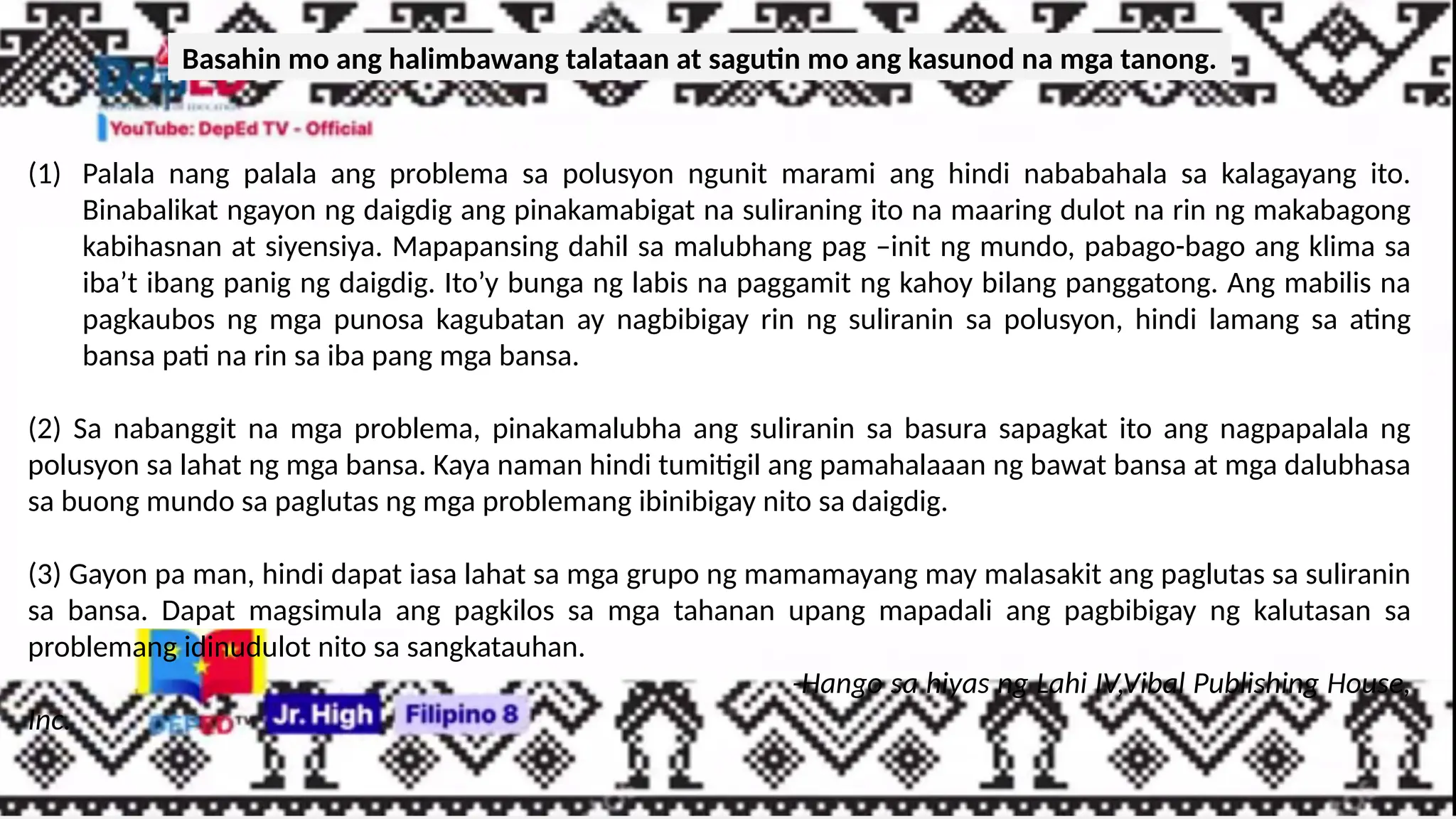 Sa kasalukuyan, ang iba’t ibang sakuna tulad ng mga lindol, pandemya ...