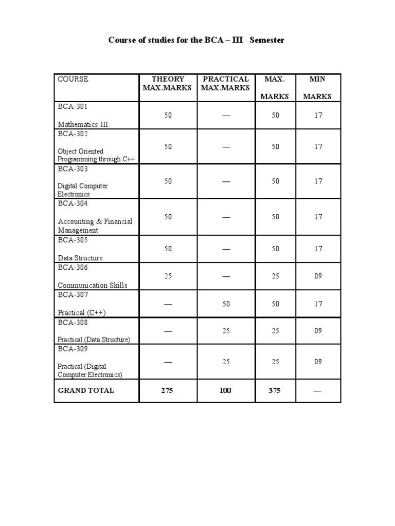 University of Lucknow BCA 3rd Semester Syllabus PDF Download 2025 ...