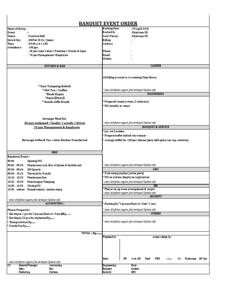 Editable Banquet Event Order (BEO) Templates in Word to Download