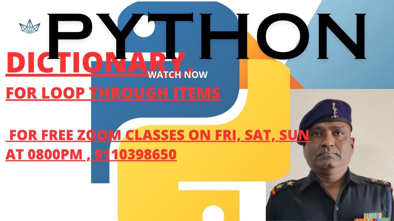 PART 8::PYTHON DICTIONARY, FOR LOOP THROUGH ITEMS, FREE CLASS CONDUCTED ...