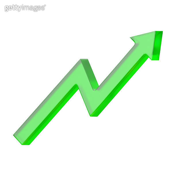 3D green graph chart with a rising arrow, representing increasing ...