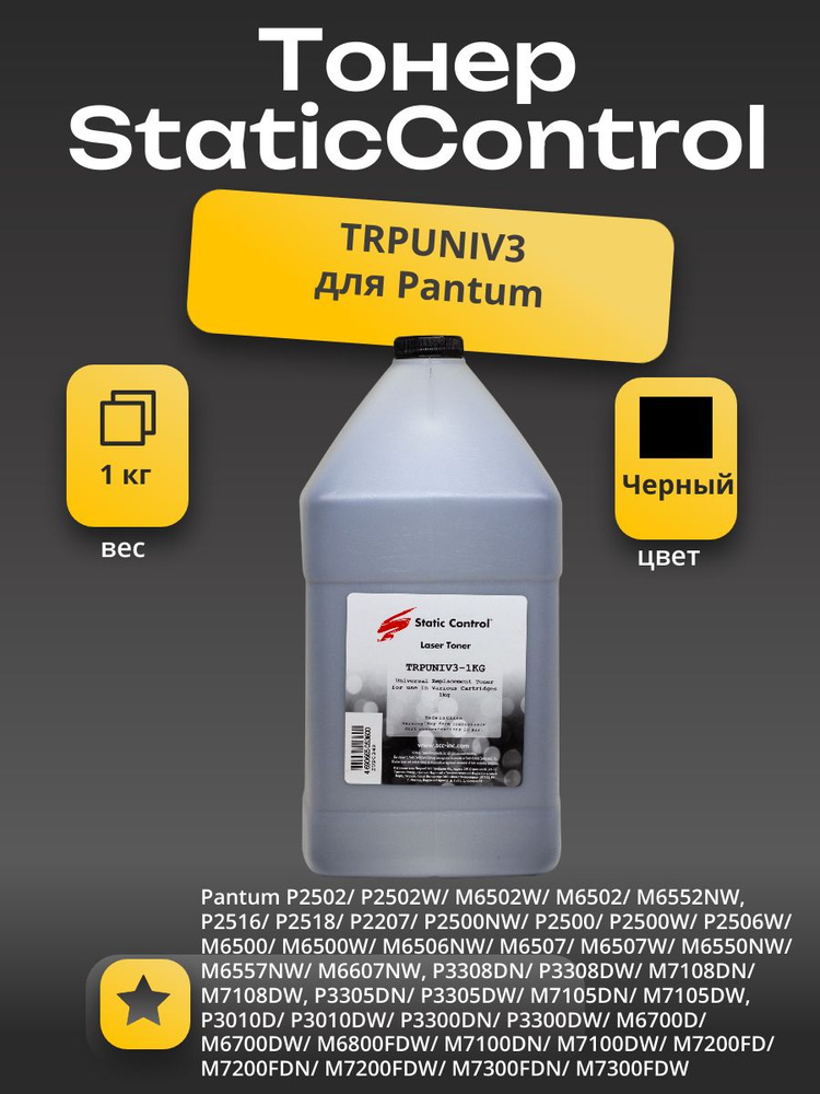 Тонер Static Control Тонер Static Control Универсальный для Bk, 1 кг ...
