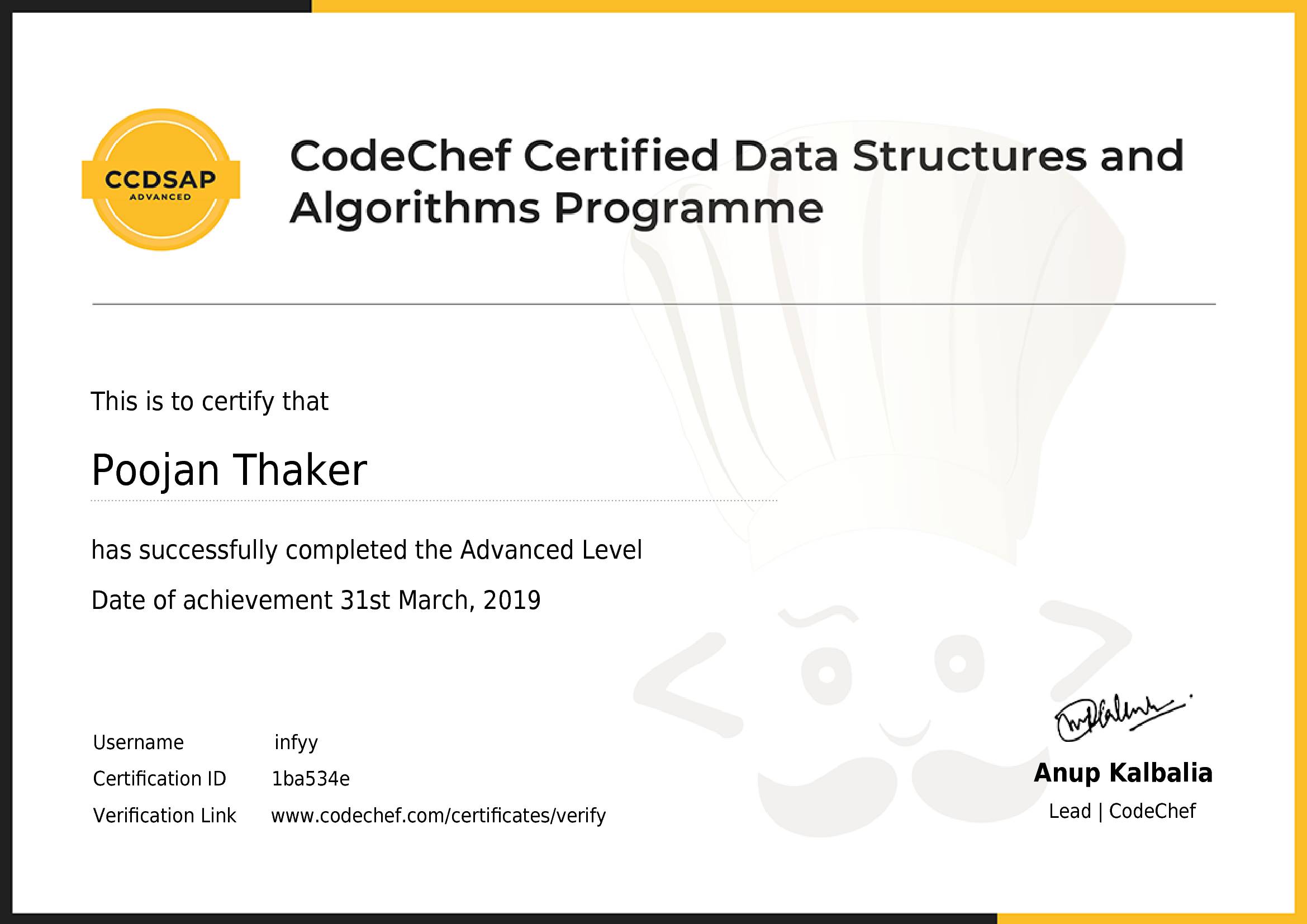 User Certificate | CodeChef