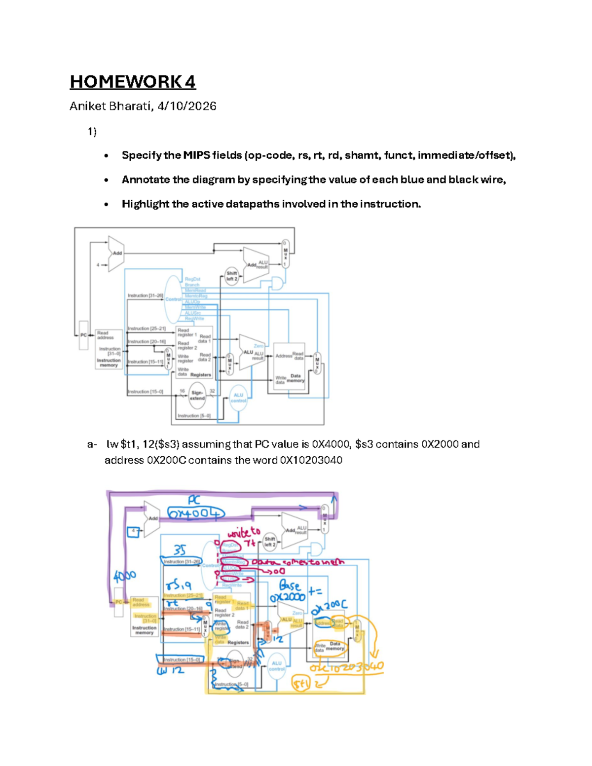 Homework 4: MIPS Instruction Analysis and Datapath Annotation - Studocu