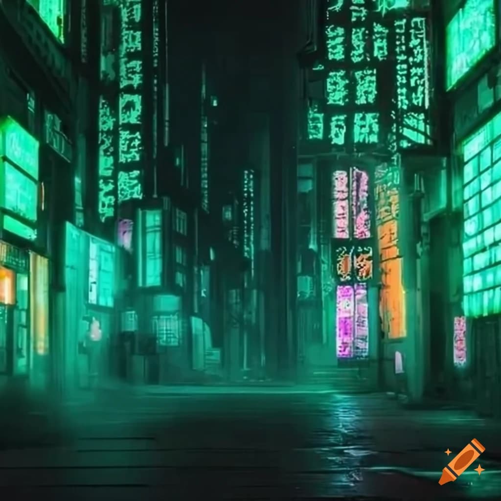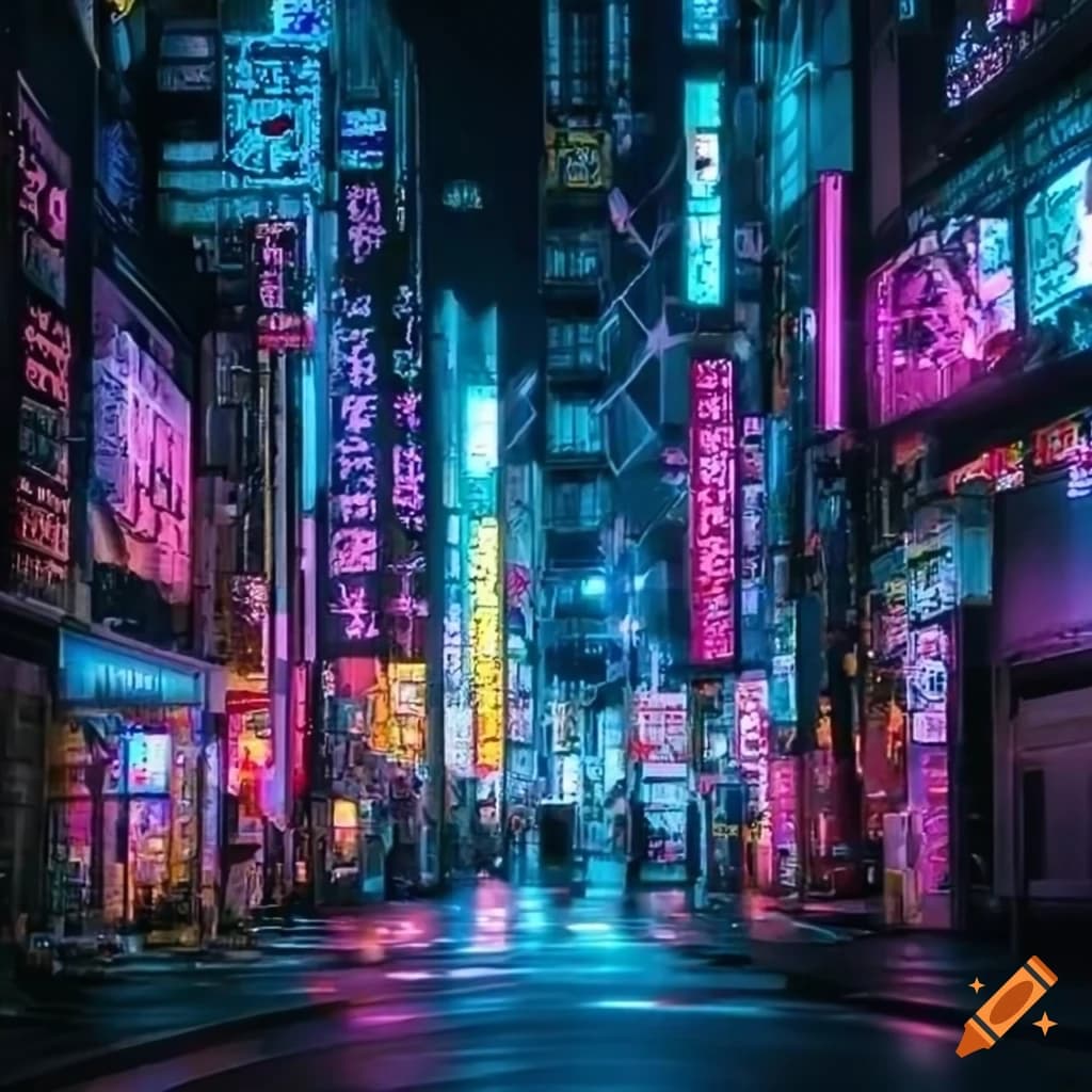 The neon-lit streets of a cyberpunk anime night city with this ...