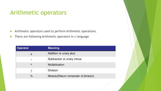 Basic operators and it's types in c languages | PPTX