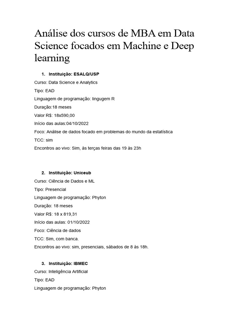 Comparativo de Cursos de MBA em Data Science | PDF | Python (linguagem ...