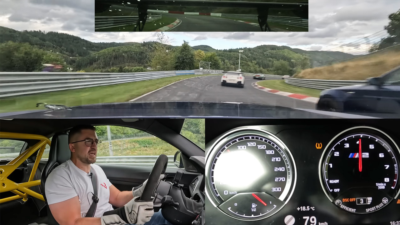 Dangerous BMW M2 chasing on wet Nürburgring track