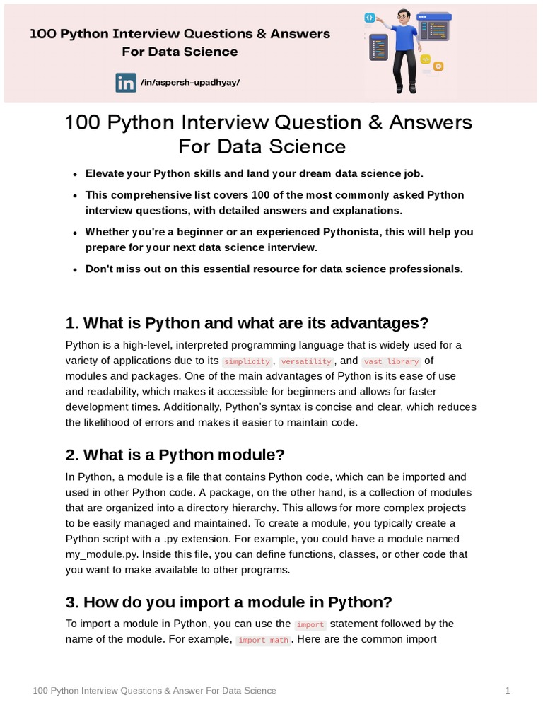 100 Python Interview Questions & Answer For Data Science | PDF ...