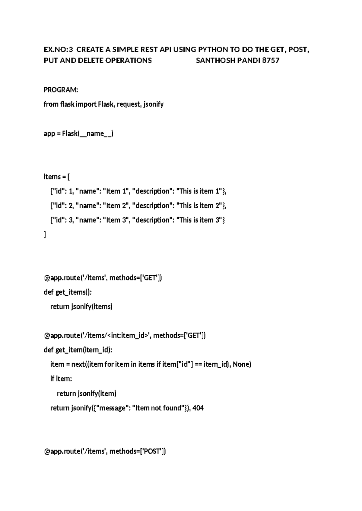 EX. NO: 3 Lab - Creating a Simple REST API with Python - Studocu