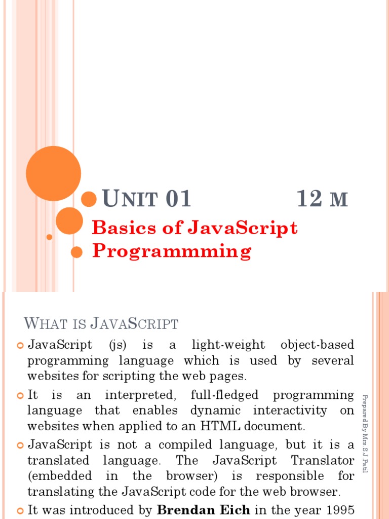 Based on this image's title: “Unit-1 Basics of JavaScript Programming | PDF | Control Flow | Java Script”