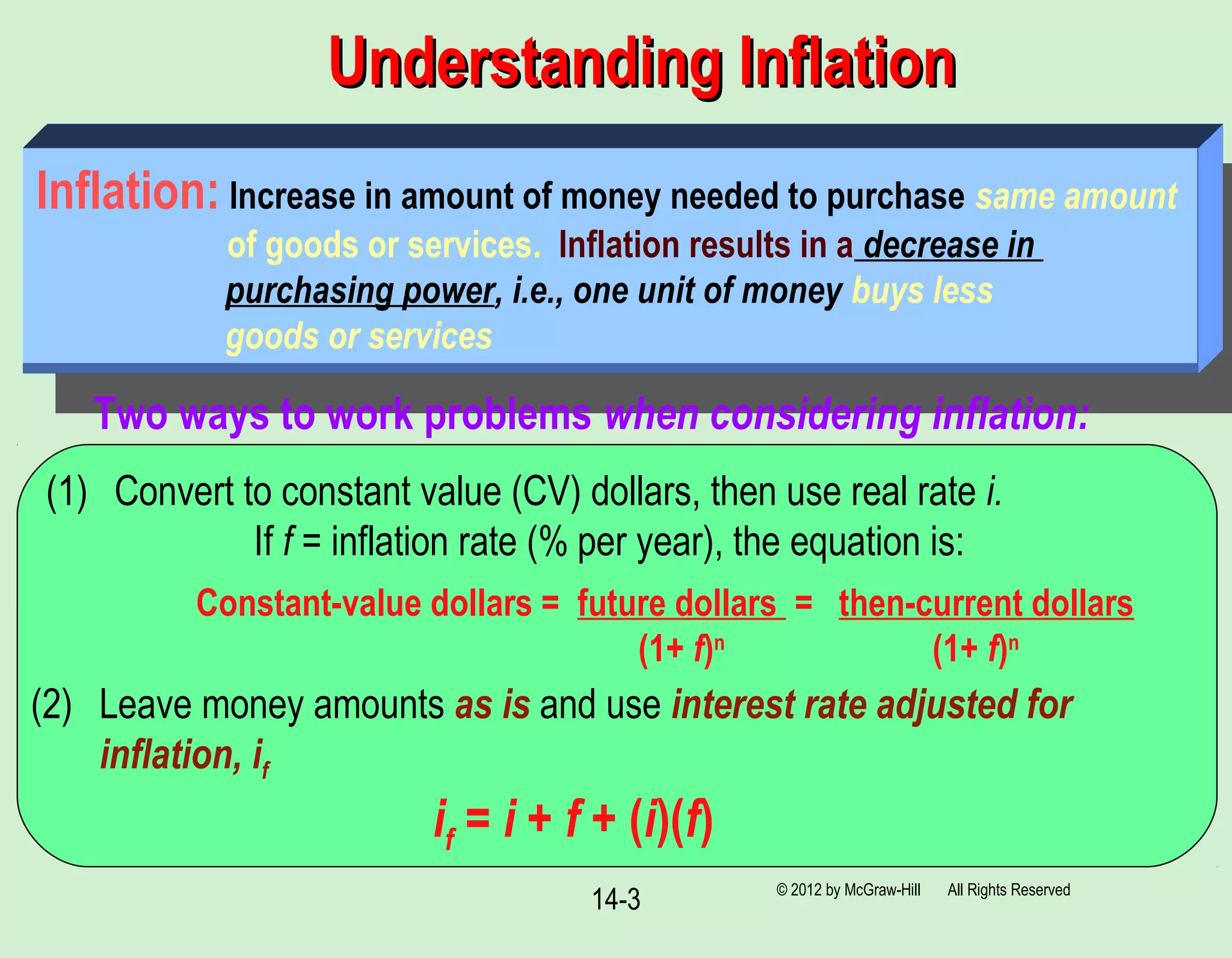 Effects of Inflation: Engineering Economy Lecture No. 12 Sunday, May 14 ...