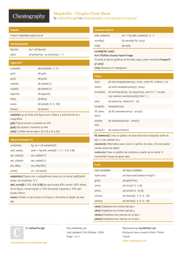Matplotlib - Chopito Cheat Sheet by AdrianPerogil - Download free from ...