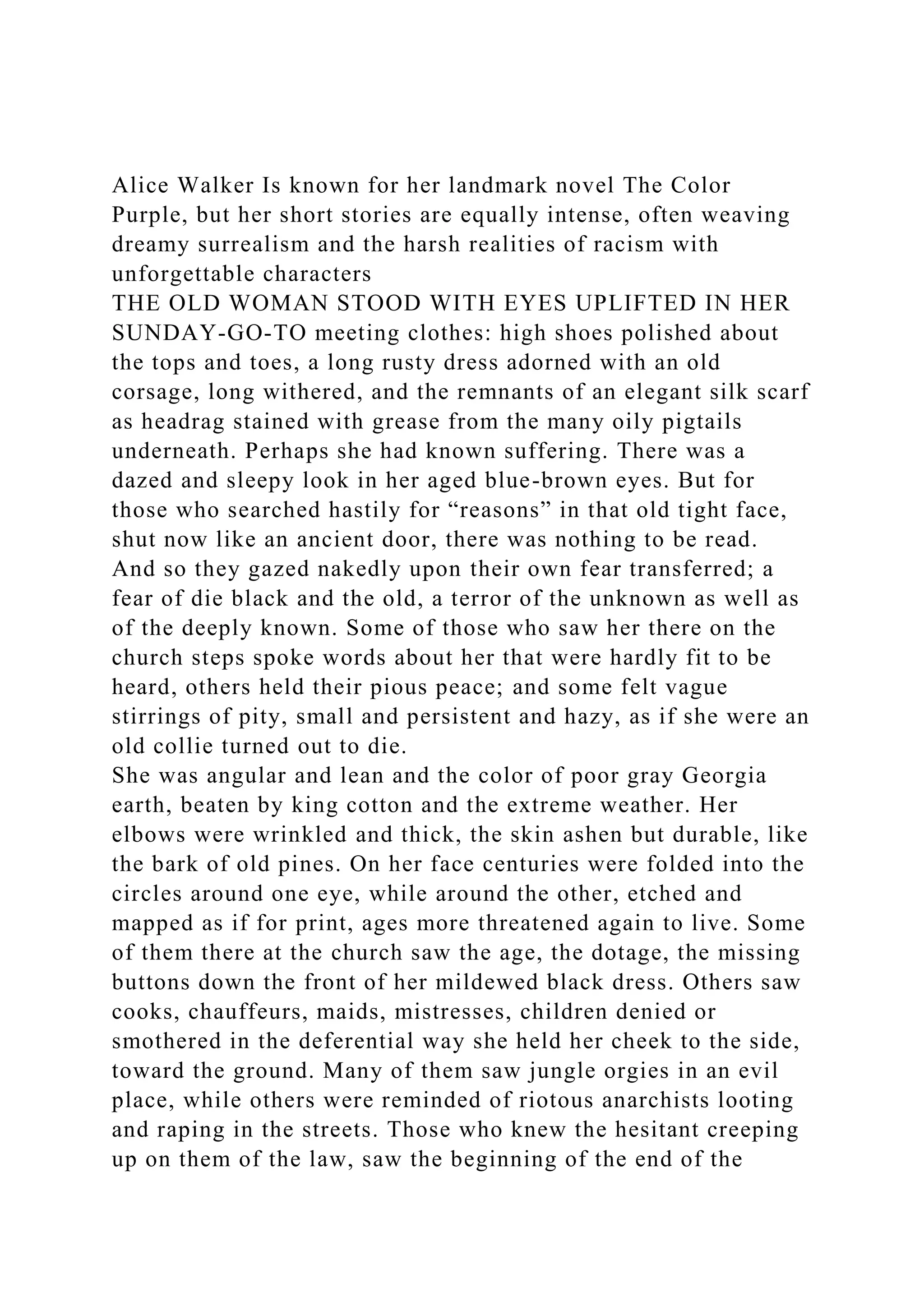Alice Walker Is known for her landmark novel The Color Purple, but.docx